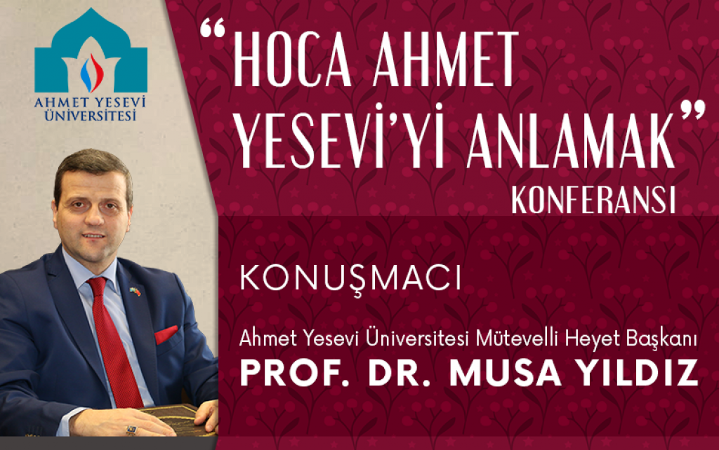 Ahmet Yesevi Üniversitesi Mütevelli Heyeti Başkanı Prof. Dr. Musa Yıldız, 7 Haziran 2017 saat 11.00'de, Gölbaşı Ahmet Yesevi Kültür Merkezi'nde Gölbaşı Belediyesi tarafından düzenlenen ''Hoca Ahmet Yesevi'yi Anlamak'' konferansına konuşmacı olarak katılacaktır.